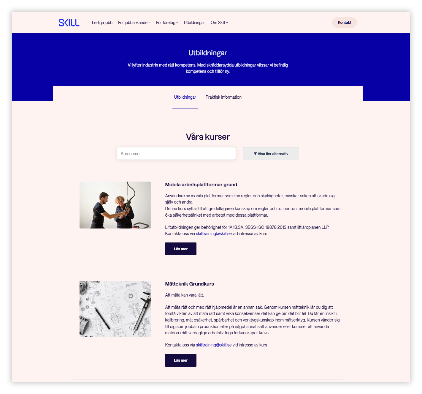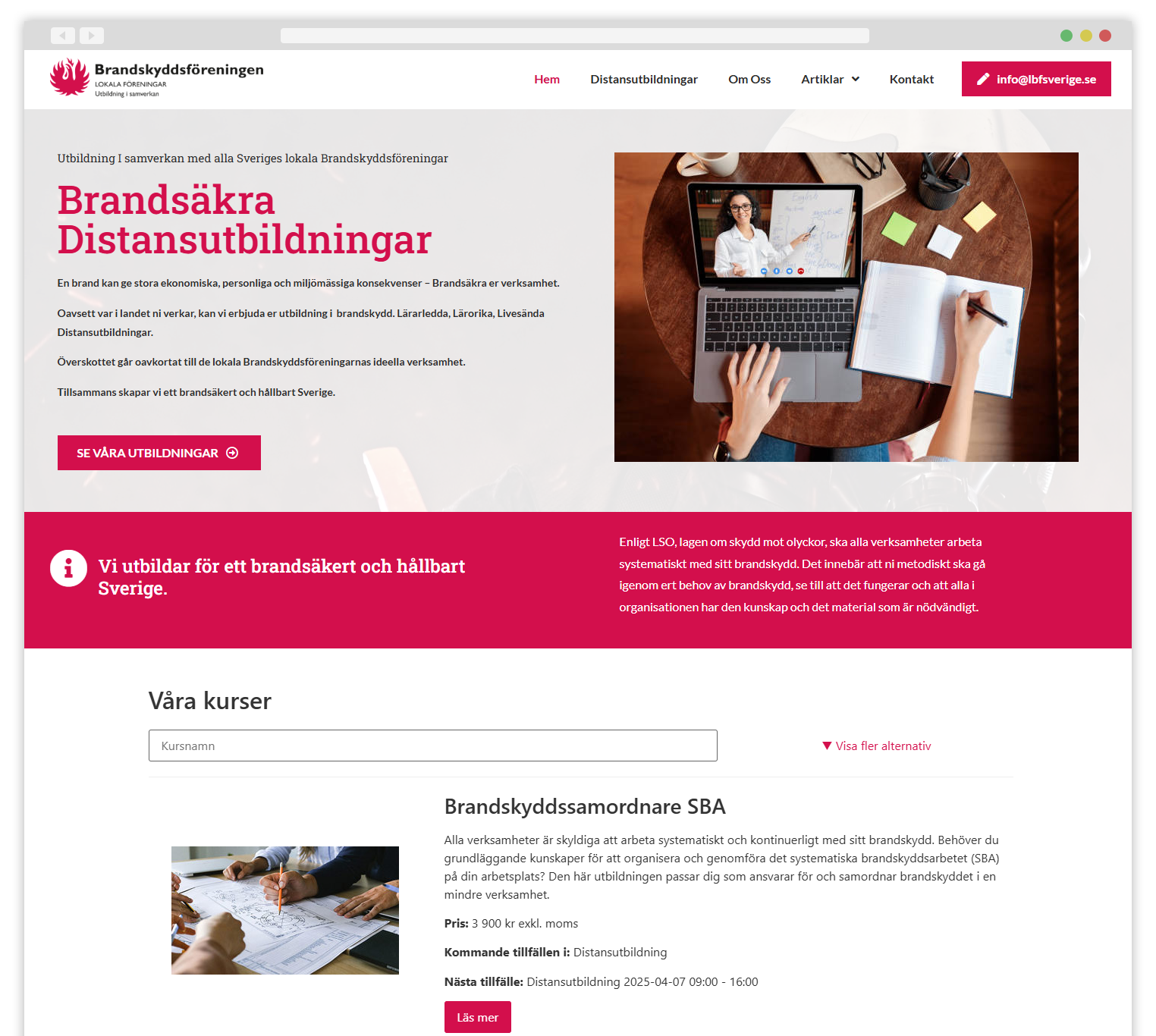 Med EduAdmins Kursportal kan du enkelt publisere kursene dine på nettsiden din. Kursportalen støtter både betaling via faktura og kort, noe som gir kundene dine fleksibilitet i betalingsalternativene.