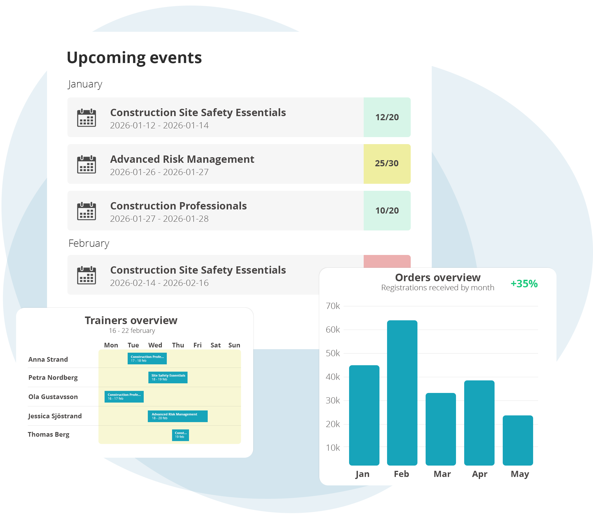 EduAdmin gir deg komplett støtte for å planlegge, administrere og følge opp kurs og kurstilfeller i én sammenhengende arbeidsflyt. All informasjon samles på ett sted – fra timeplanlegging og ressurser til oppfølging – noe som skaper en effektiv prosess for både kursadministratorer og ansatte.